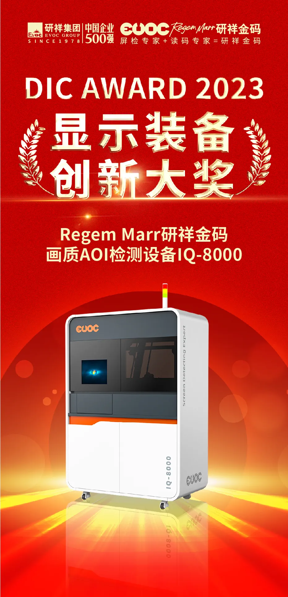 近日,DIC AWARD 2023国际显示技术创新大奖获奖名单公布,星空电竞画质AOI检测设备IQ-8000凭借前沿AI技术、卓越的产品性能,荣获“显示设备创新大奖”!